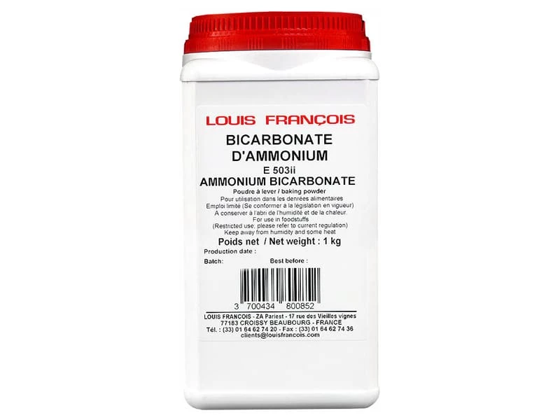 Poudre à lever blanche ou cristalline ayant une odeur typique de l’ammoniaque.