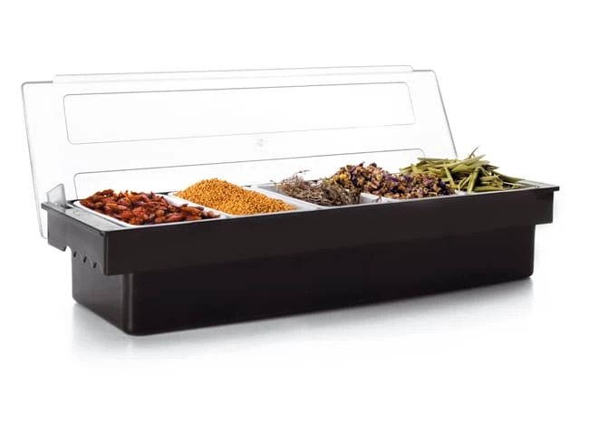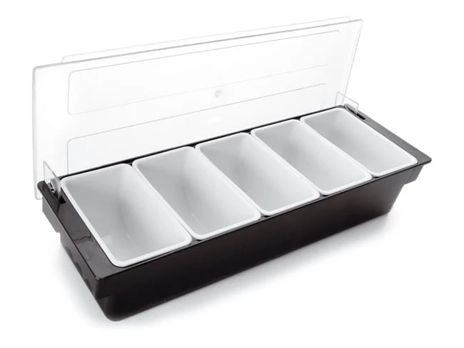 Boîte à condiments 5 compartiments avec couvercle.