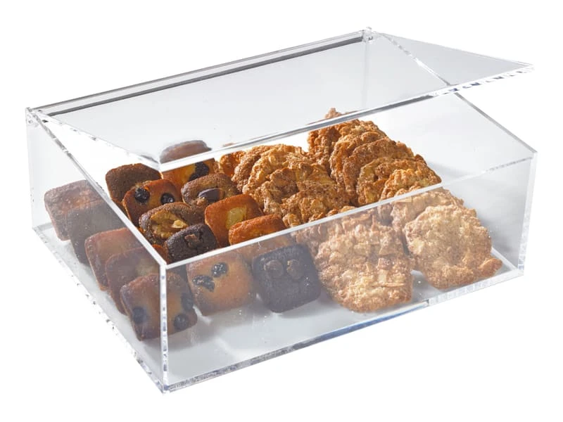 Boîte de conservation en plexiglass avec couvercle charnière, pour petits fours secs, bonbons, dragées…