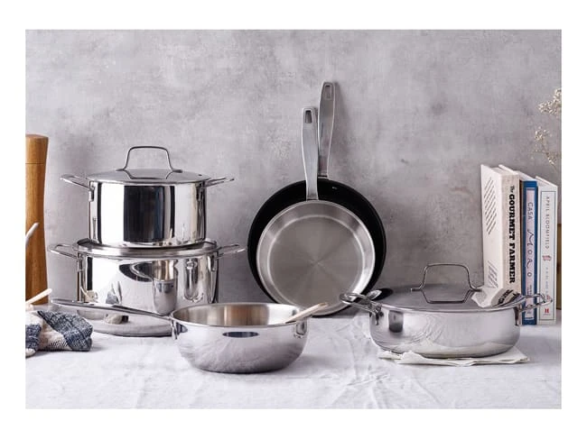 Inox 18/10 finition brillante extérieure et mate intérieur.