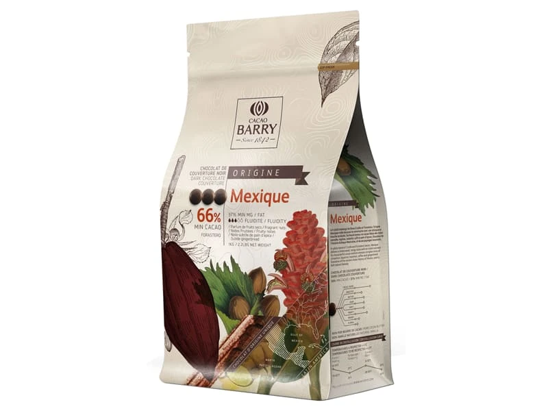 Après une attaque légèrement acide, ce chocolat de couverture noir en pistoles, Origine Mexique fort en cacao, libère des notes épicées et boisées, avec une pointe de réglisse.