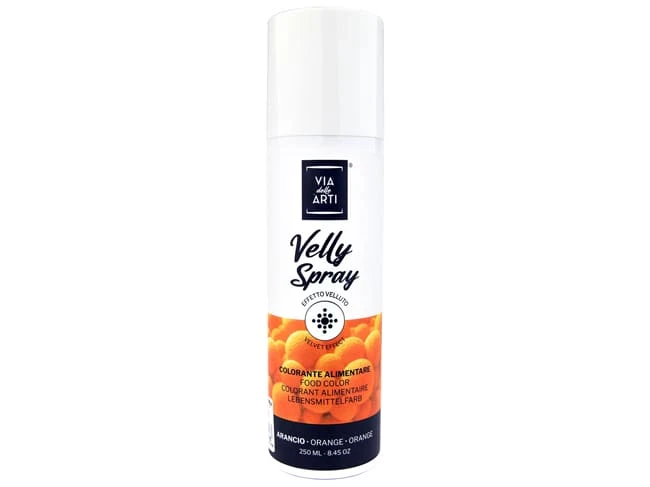 Spray à base de beurre de cacao coloré. Donne un effet velours à vos entremets, bûches, petits gâteaux.