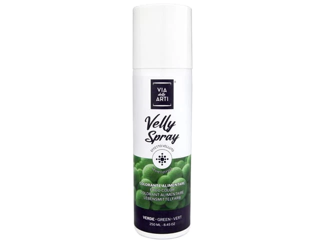 Spray à base de beurre de cacao coloré. Donne un effet velours à vos entremets, bûches, petits gâteaux.
