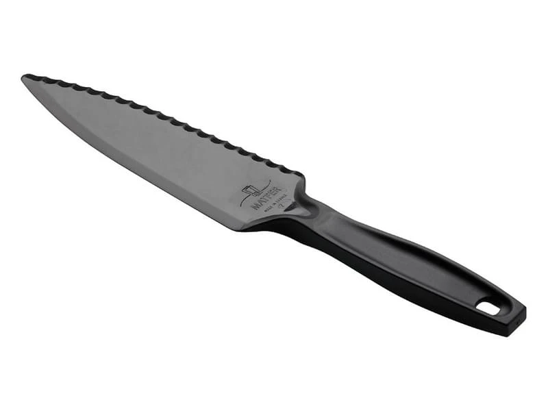 Pour tartes, entremets, etc … idéal pour la découpe dans les moules anti-adhérents, n’abîme pas le revêtement. Un côté dentelé, un côté uni, tranchant et efficace, 3 outils en 1. Utilisable pour la découpe des produits chauds.