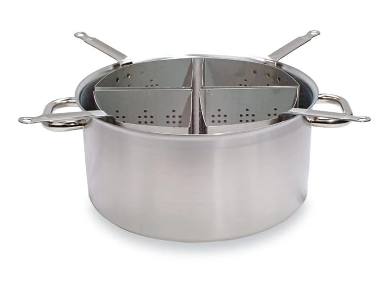 Ensemble cuit-pâtes constitué d’un faitout et de 4 cuit-pâtes triangulaires en acier inoxydable 18/10.