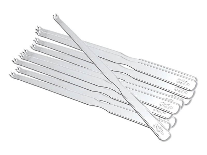 Lot de 12 curettes à homard en acier inoxydable.