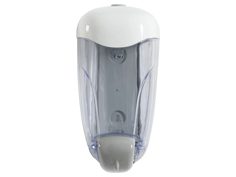 Distributeur manuel de savon, facile à remplir par le dessus pour une parfaite visualisation du remplissage.