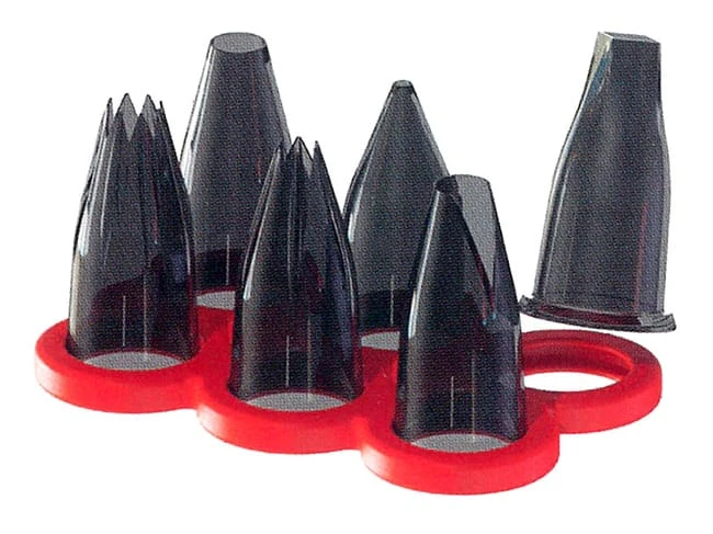 Le support rouge en TPE (photos 3 et 4) accueille 6 douilles Tritan et possède un trou d’accroche.