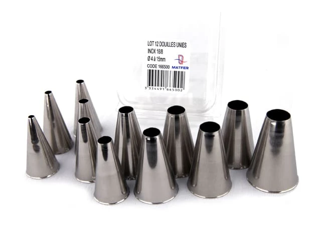 Boîte de 12 douilles unies en acier inoxydable monobloc, sans bord roulé.