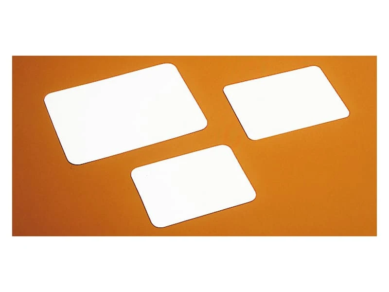 Étiquette rectangulaire en PVC lavable, sans pique.