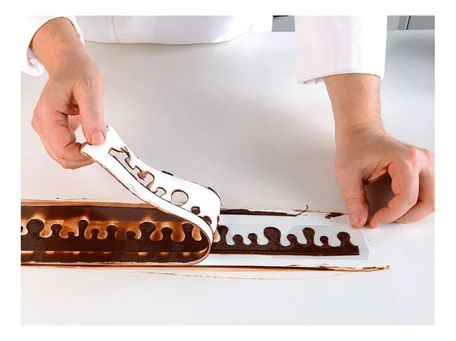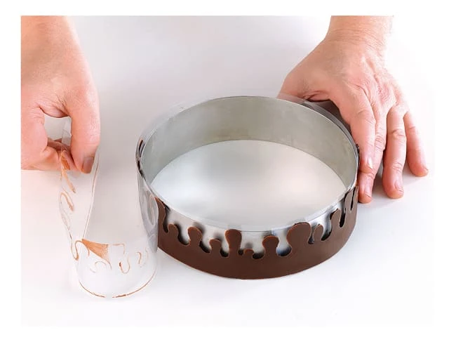 Conçu pour créer facilement et simplement des décors au chocolat autour de vos entremets de Ø 6 à Ø 26 cm.