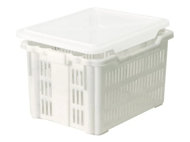 Manne gerbable emboitable avec fond plein et parois ajourées.