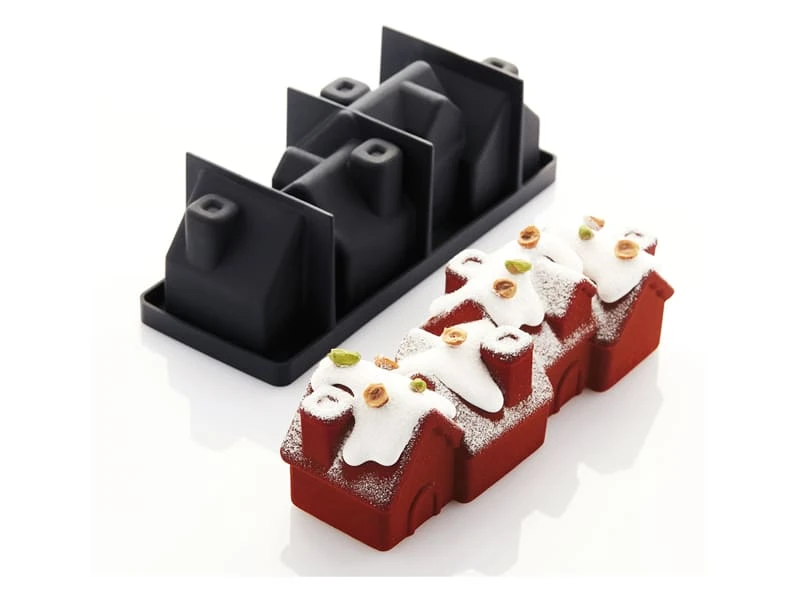 Le moule bûche en silicone « Chalet » a été imaginé par le Chef Pâtissier Frank Haasnoot, puis fabriqué par Pavoni.