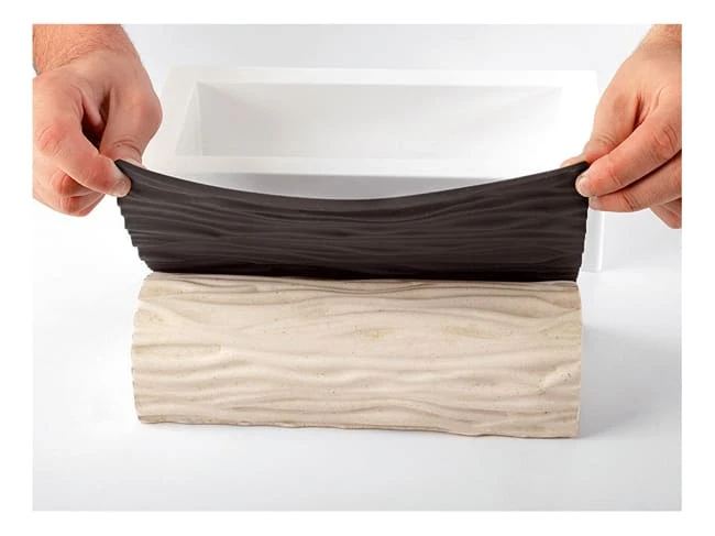 Moule à bûche en silicone avec son tapis forme matelassé.