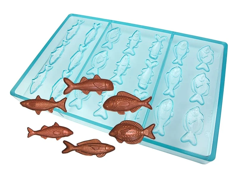 Moule en tritan comportant 21 empreintes de poissons assortis.