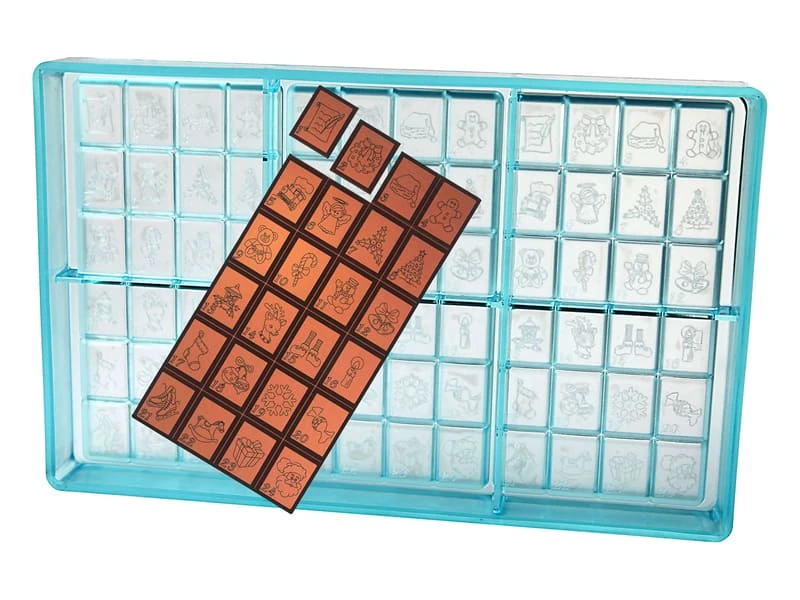 Moule en tritan comportant 3 plaques pour tablettes de chocolat de 24 empreintes chacune.