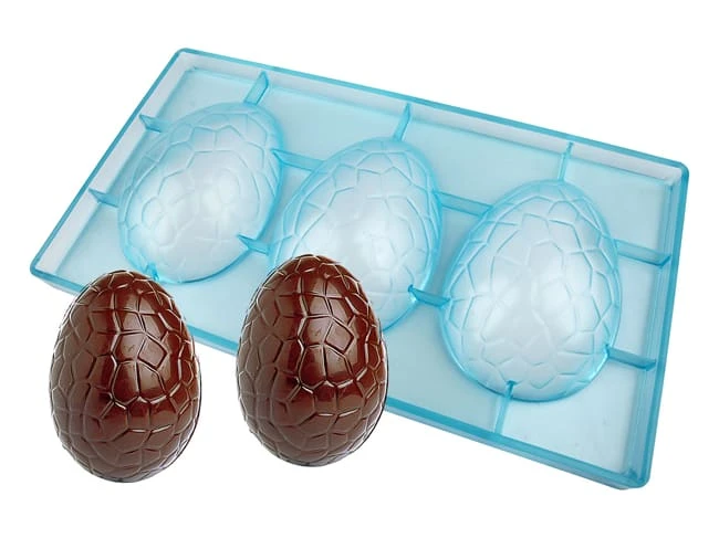 Moule en tritan comportant 3 empreintes pour réaliser 1 oeuf 1/2, ou 3 oeufs avec 2 moules.