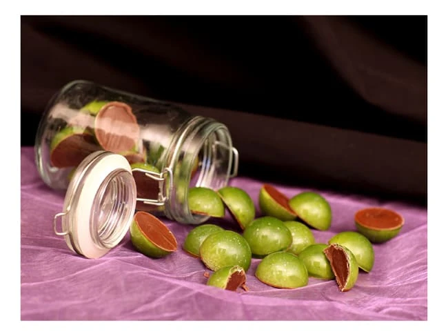 Ce type de moule permet de faire des coques en chocolat qui, après assemblage, formeront une sphère.