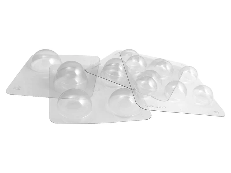 Lot de 4 plaques en polyéthylène pour moulage de 1/2 sphères en chocolat.