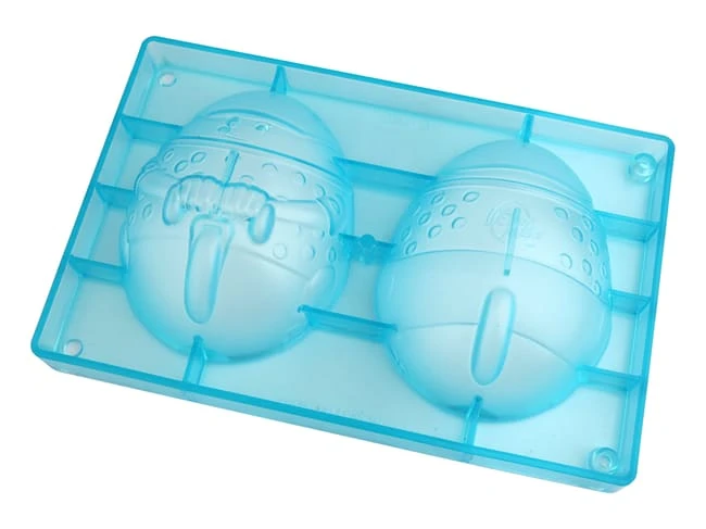 Moule en tritan comportant 2 empreintes pour réaliser 1 Oeuf « Maillot de Cycliste » après assemblage.