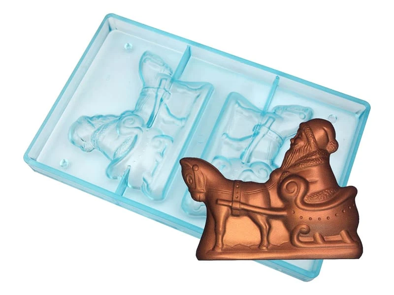 Moule en tritan composé de 2 empreintes (recto/verso) pour former le père Noël dans son traîneau.