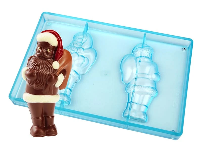 Moule en tritan composé de 2 empreintes (recto/verso) pour former le père Noël portant sa hotte.