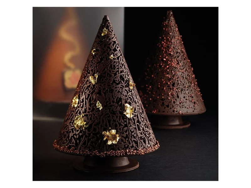 Moules thermoformés en PVC destinés à réaliser un moulage en chocolat d’un sapin de Noël « Cône ».