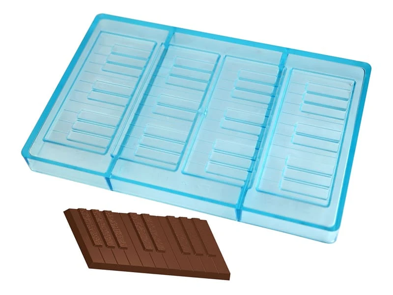 Moule en tritan permettant de réaliser 4 tablettes de chocolat en forme de touches de piano.