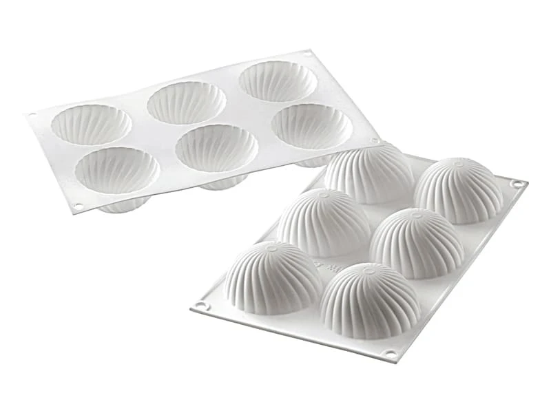 Réalisé en silicone platinium 100% fabriqué en Italie, ce moule 6 demi sphères vrillées Parfum résiste aux températures allant de -60°C à +230°C, garantissant ainsi des résultats parfaits aussi bien dans une cellule de refroidissement ou congélateur, que dans un four.
