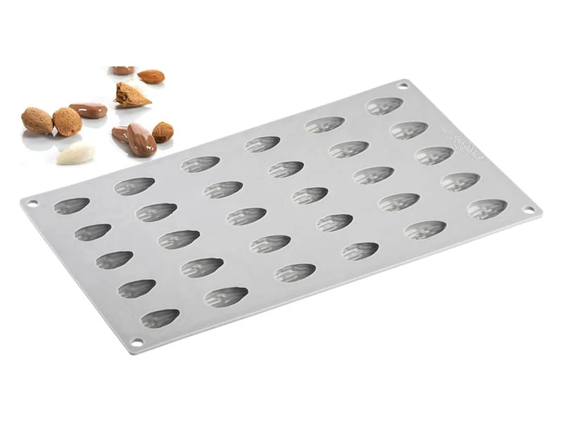 Moule souple en silicone platinium, 30 empreintes forme de quartier de mandarine.