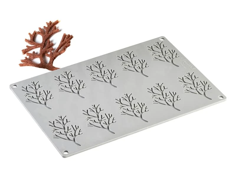 Moule souple en silicone platinium, 10 empreintes forme branche d’arbre.