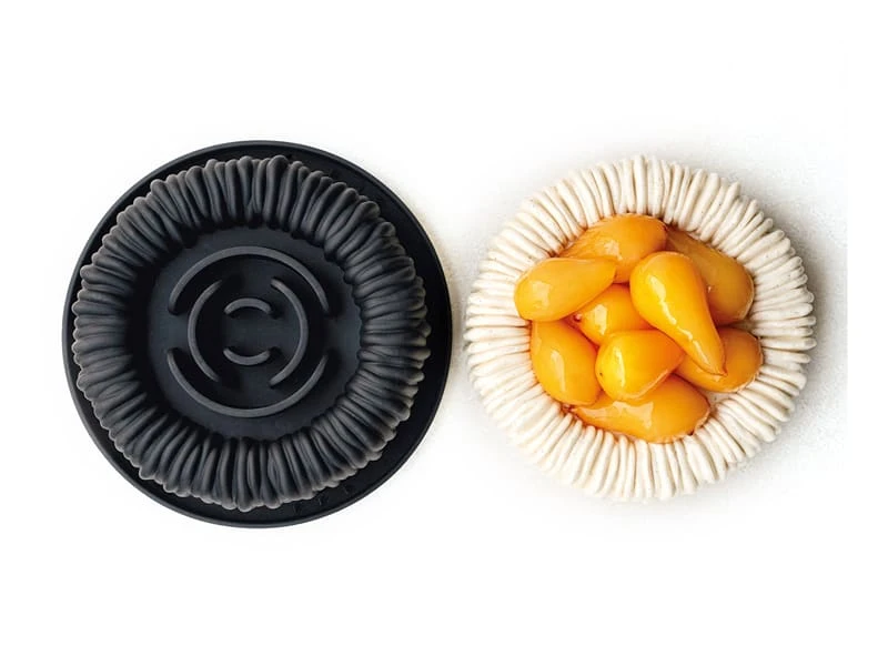 Vous pouvez, grâce à ce moule, réaliser un entremet à l’esthétique sophistiquée et inédite.