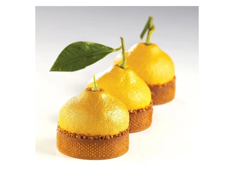 Cédric Grolet, Meilleur Chef Pâtissier du monde 2018, a imaginé pour Pavoni 9 moules représentant 3 fruits : le citron, le marron et la noisette, chacun dessiné dans 3 formats différents.