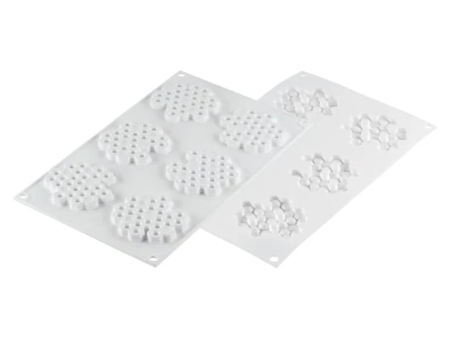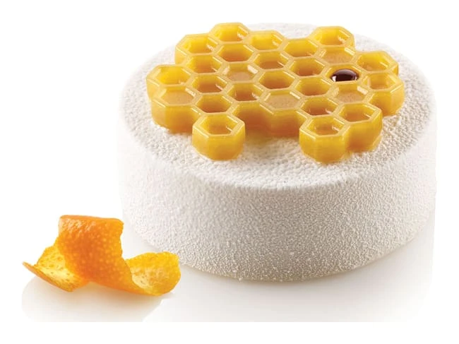 Ce moule en silicone vous permettra de réaliser des décors de forme « nid d’abeille », en chocolat sans congélation, ou en mousse, crème, confit de fruit, ganache montée… avec congélation.