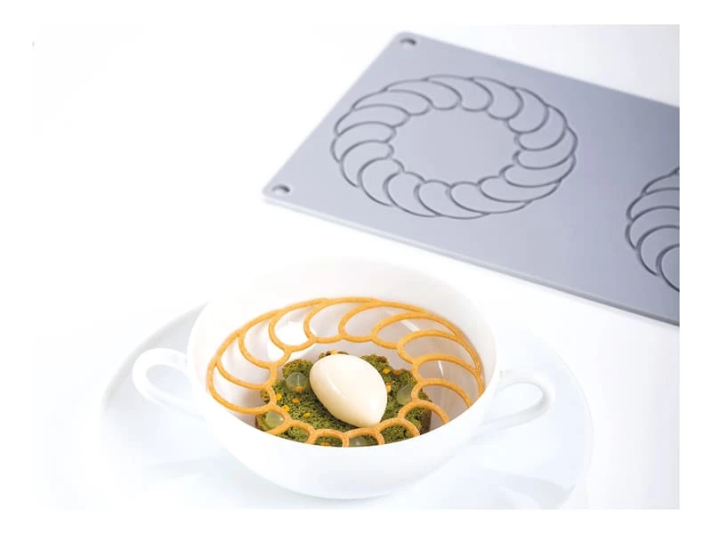 Imaginé par le Chef Paolo Griffa, ce moule souple en silicone platinium propose 3 empreintes pour des décors circulaires.