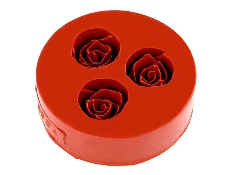 Plaque ronde souple en silicone alimentaire pour moulage en pâte d’amande, pastillage, 3 empreintes en forme de rose.
