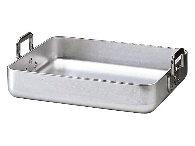 Plat à rôtir en aluminium extra-fort, queue ou poignées aluminium rivetées.