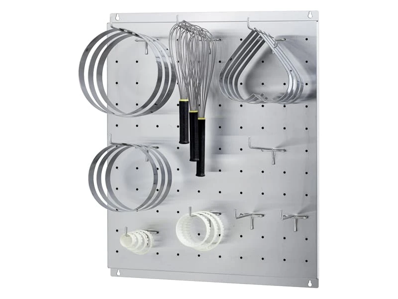 Conçu pour le stockage à portée de main des ustensiles, des cercles à tartes et entremets.