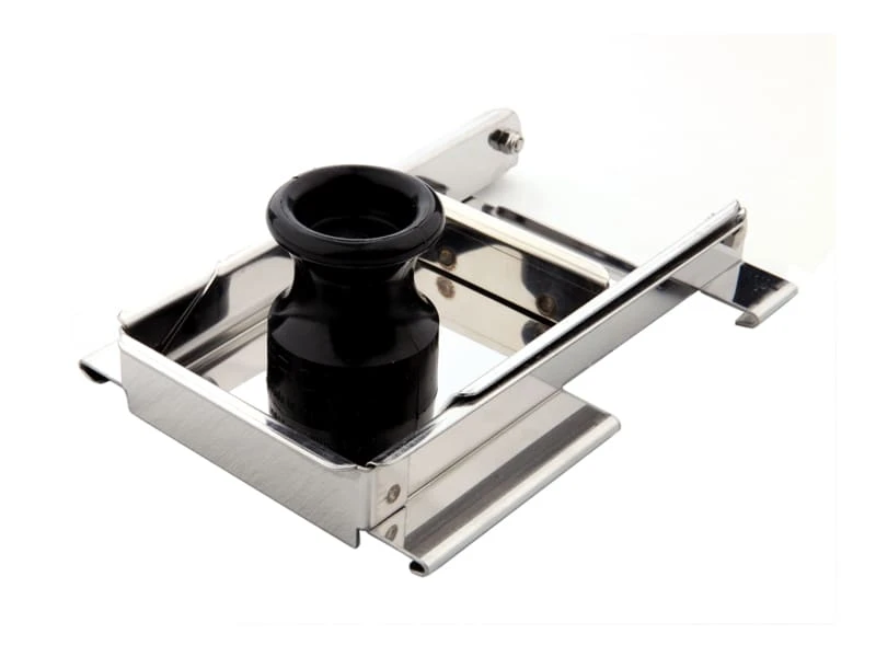En acier inoxydable, ce chariot de protection s’enclenche sur la mandoline et protège les mains d’éventuelles coupures.