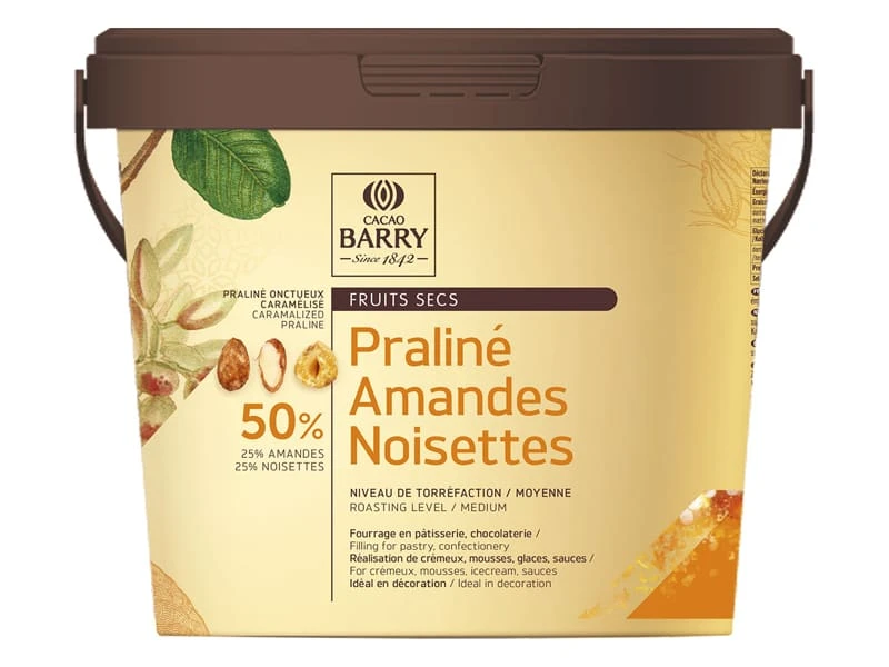 Retrouvez le goût pur des fruits. Cacao Barry a sélectionné des noisettes, amandes de haute qualité garantissant des saveurs typiques. Ce praliné gourmand offre une texture lisse et un goût raffiné de fruits secs fraîchement torréfiés.