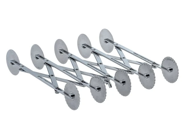Rouleau en inox équipé de 5 lames lisses et 5 lames cannelées, très utile pour la découpe des pâtes en plusieurs bandes régulières.