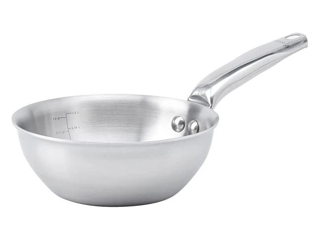 La sauteuse est essentielle pour la cuisine de réduction. Un fond de petit diamètre pour une chauffe rapide et un large diamètre supérieur pour une évaporation parfaite de l’humidité.