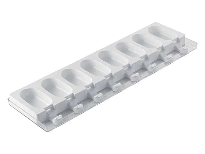Grâce aux propriétés anti-adhérentes du silicone, le démoulage de vos 16 mini esquimaux se fera facilement. Réalisé en silicone platinium 100% fabriqué en Italie, ces moules à glace résiste aux températures allant de -60°C à +230°C, garantissant ainsi des résultats parfaits aussi bien dans une cellule de refroidissement ou congélateur, que dans un four. Livré avec plaque support + 100 mini bâtonnets.