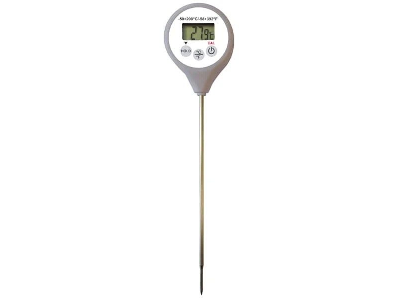 Thermomètre digital étanche (IP67) avec numéro individuel et certificat de précision.